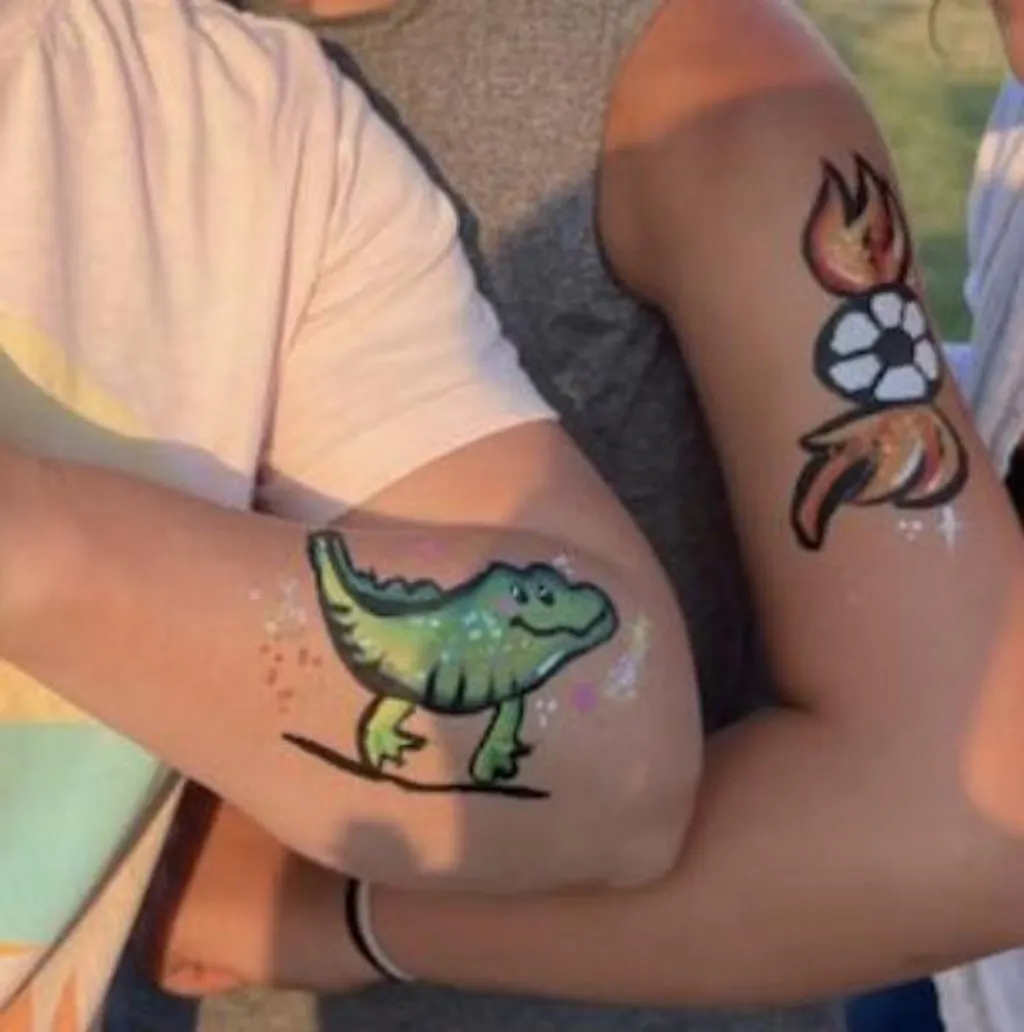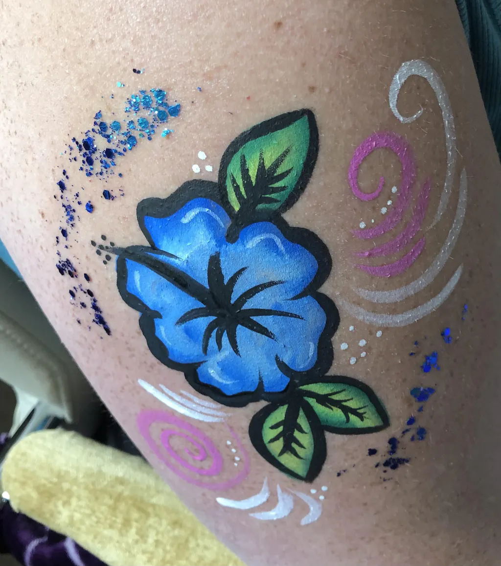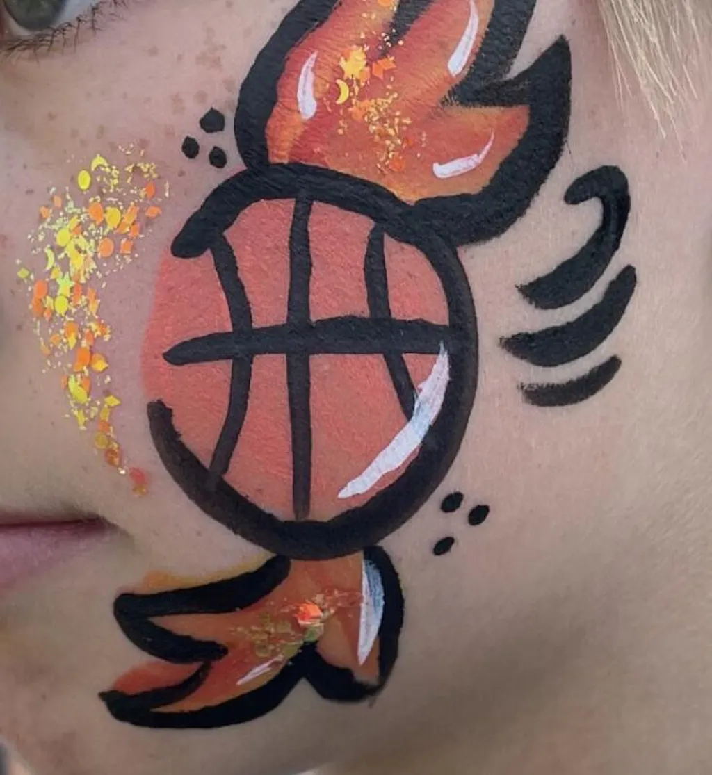 Fusion Body Art’s split cakes just require a flat face painting brush and water to get started. For flowing cheek art designs use a 1” flat brush to load all of the colours in the split cake or use smaller flat brushes to just pick up a few of the colours. Make sure to start with a slightly damp brush and add more water as needed by just dipping one corner of the brush lightly into your water. If you are new to 1 stroke face painting, the internet is filled with tons of amazing 1 stroke design ideas to inspire you. This method of face painting will save you a lot of time, and it will impress your clients as they watch these beautiful Fusion Body Art colours flow off your brush at the same time. You can also load your split cakes with small face painting sponges or round daubers. When using sponge, dab the colours onto the skin where you would like them, gently patting back and forth until all of the colours are even and bold.