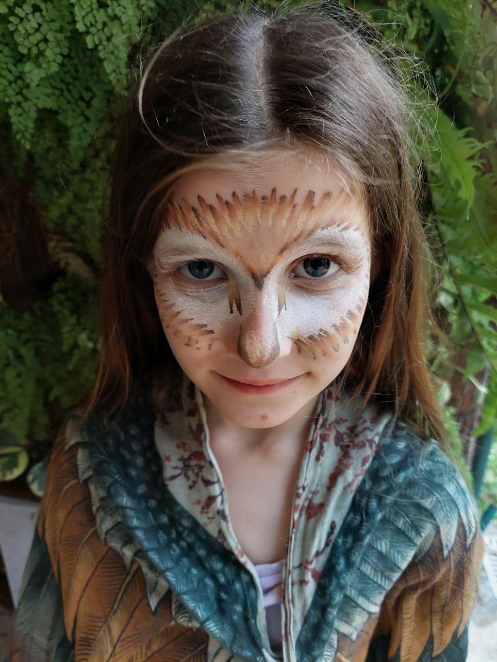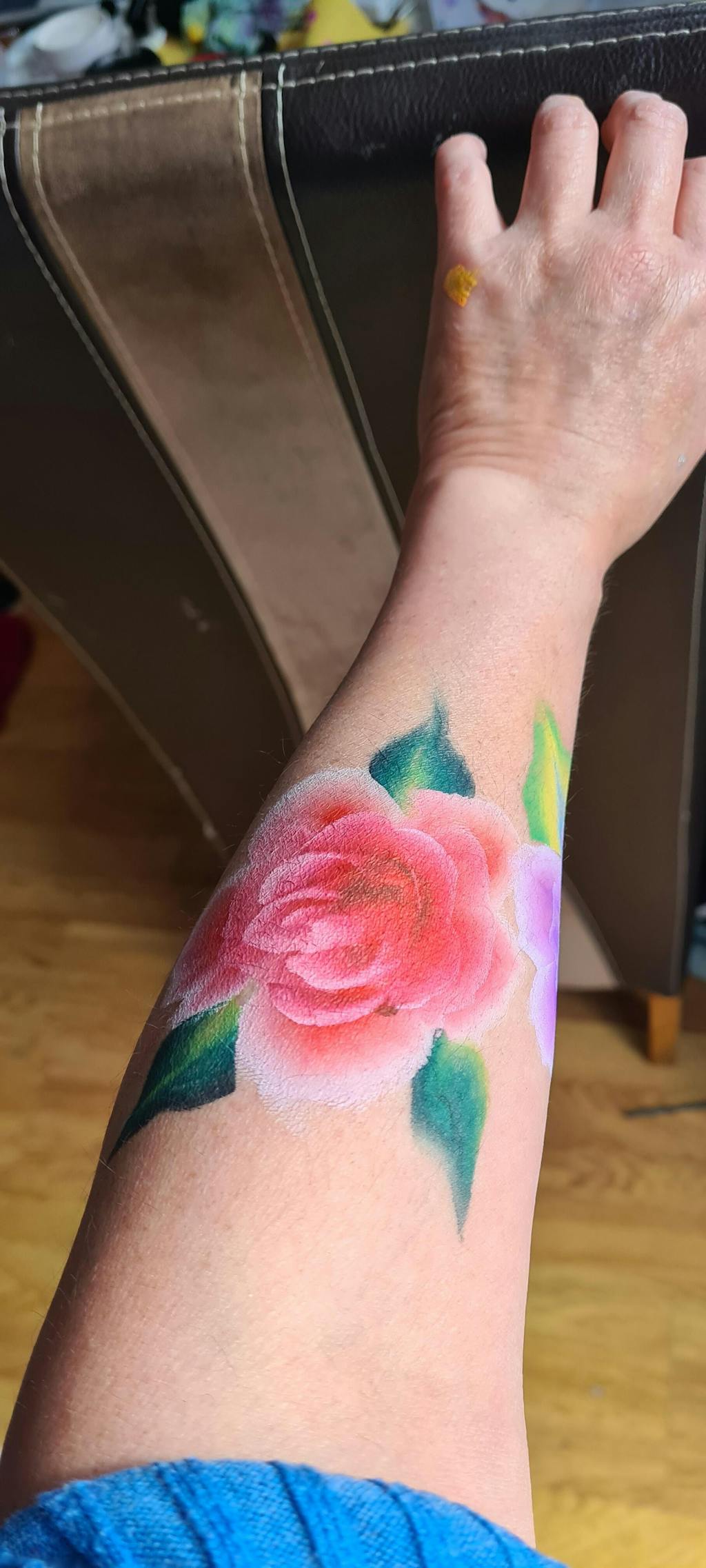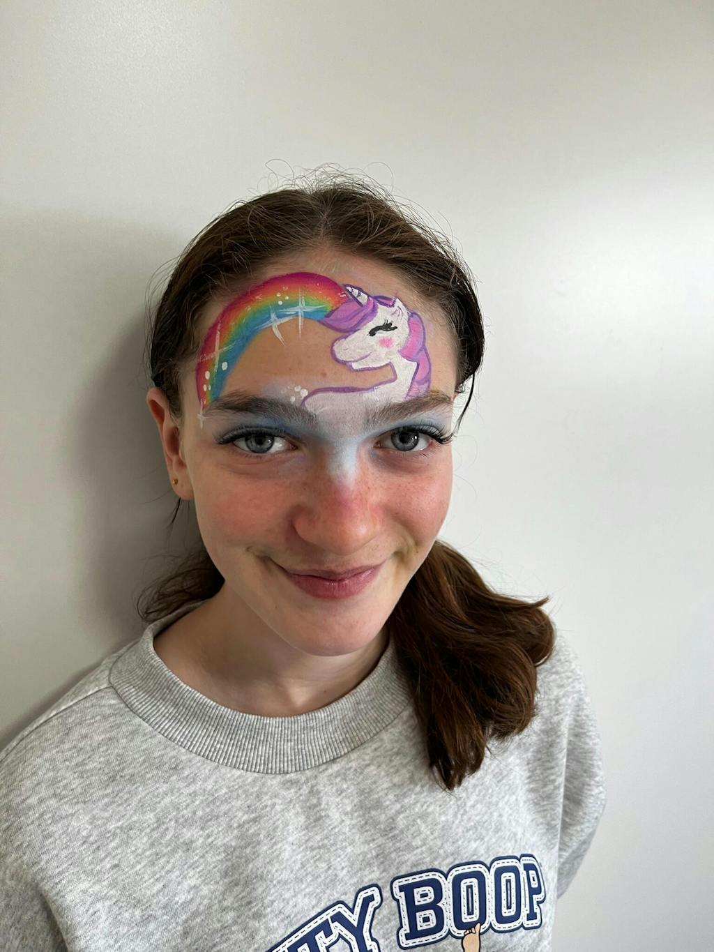 Fusion Body Art’s split cakes just require a flat face painting brush and water to get started. For flowing cheek art designs use a 1” flat brush to load all of the colours in the split cake or use smaller flat brushes to just pick up a few of the colours. Make sure to start with a slightly damp brush and add more water as needed by just dipping one corner of the brush lightly into your water. If you are new to 1 stroke face painting, the internet is filled with tons of amazing 1 stroke design ideas to inspire you. This method of face painting will save you a lot of time, and it will impress your clients as they watch these beautiful Fusion Body Art colours flow off your brush at the same time. You can also load your split cakes with small face painting sponges or round daubers. When using sponge, dab the colours onto the skin where you would like them, gently patting back and forth until all of the colours are even and bold.